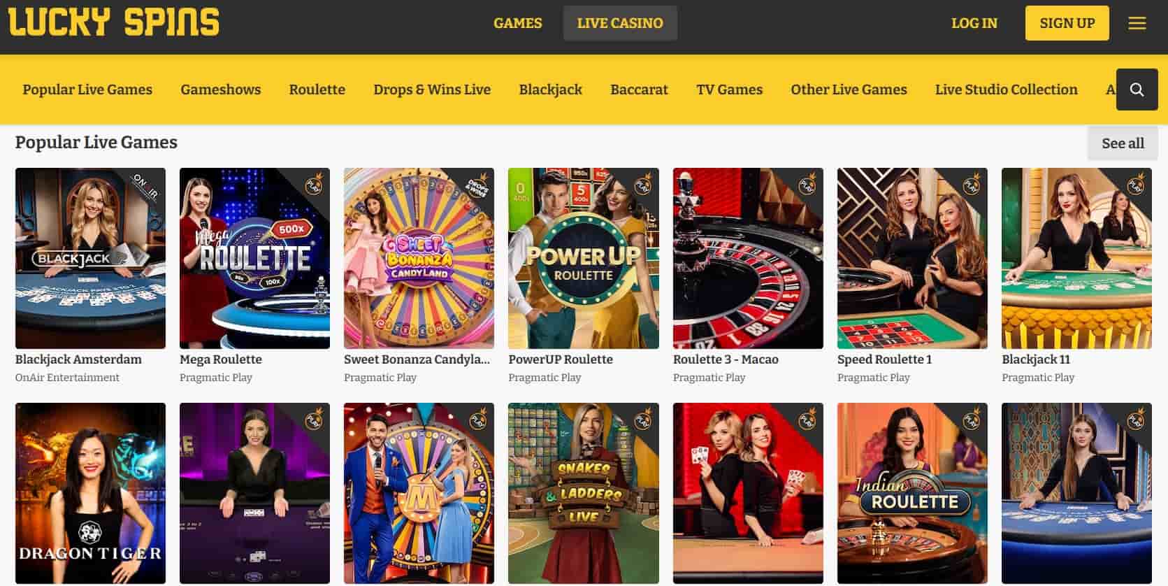loistavalta. Mutta ei, jos käytät hakupalkkia, löydät loistavan kokoelman satunnaislukugeneraattorirulettia, blackjackia, texas hold’emia ja baccaratia. Sinun tarvitsee vain etsiä niitä hieman enemmän. Sama pätee jättipotteihin. Fortunate Spins -kasino tarjoaa paljon paremman pelivalikoiman kuin esimerkiksi Christchurchin nettikasino, joka tarjoaa alle puolet, mutta paljon helpommalla navigoinnilla. Joten en usko tämän pienen epätäydellisyyden karkottavan sinua. Lucky Spins -kasino käyttää yli 40 ohjelmistotoimittajaa, mikä on melko vähän verrattuna sivustoihin, kuten Christchurchin nettikasino, jolla on yli 70 ohjelmistotoimittajaa, ja Exchange-kasino, jolla on yli 100 ohjelmistotoimittajaa. Vaikka määrä on pienempi kuin keskiarvo, Lucky Rotates -operaattorit ovat kaikki johtavia nimiä ja nettikasinoiden suosimia kaikkialla. Tässä on muutamia parhaita videopelipalveluntarjoajia, joista valita: Play ‘n Go Press PC-pelit Spinomenal Flourishing Games Red Rake Online-pelit Live-nettikasinopeleillä on oma erikoisalue Lucky Rotates -kasinolla, joten sinulla ei ole ongelmia löytää klassikoita tai suosikkipeliohjelmia. Valikoima on melko vahva, sillä siinä on yli 700 nimikettä, mikä ylittää reilusti Greatwinin kaltaiset pelit, joilla on vain noin 100 pöytää. CasinoDaysilla (myös White Celebrity B.V.:n omistuksessa) on yli 1000 online-jakajapeliä saatavilla. Live-pelejä isännöi useita palveluntarjoajia, kuten OnAir Entertainment, Bombay Live, Practical Play, Ezugi ja Advancement. Asiakaspalvelu Live-keskustelu 24/7 Sähköposti customersupport@luckyspins.com!.?.! Puhelinnumero Ei saatavilla Muut kanavat Ei saatavilla